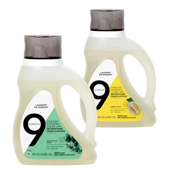 Try vinegar powered 9 Elements Laundry Detergent β never made with more than nine ingredients and gentle on sensitive skin.