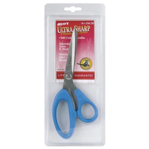 These 8-1/2in long scissors feature soft cushion handles, ultra sharp stainless steel blades, and adjustable tension.