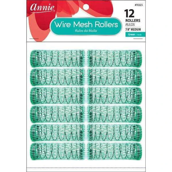 Annie Wire Mesh Rollers – Green Medium 7/8″ Diameter, 3″ Width – 12 Ct