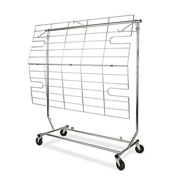 Use as either a display grid or by folding it in half it can easily fit on top of the rack base creating a bottom shelf for the collapsible rolling rack.Â