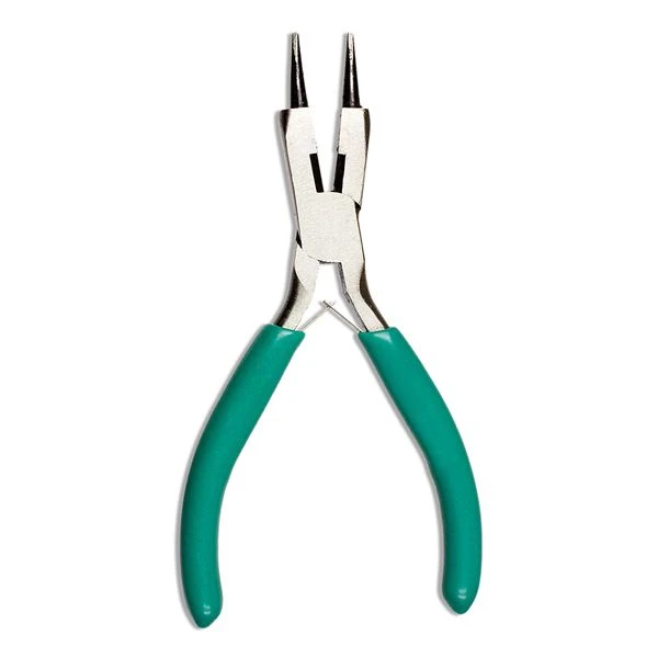 These pliers include a round portion, a flat portion, and a cutter portion, and spring leaf action in the handles to reduce fatigue from repetitive use.