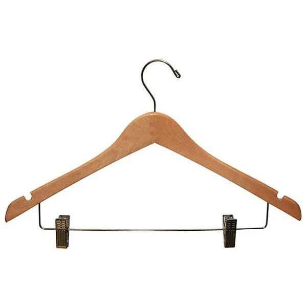 Curved Wooden Suit Hanger With Clips – Natural – 17″