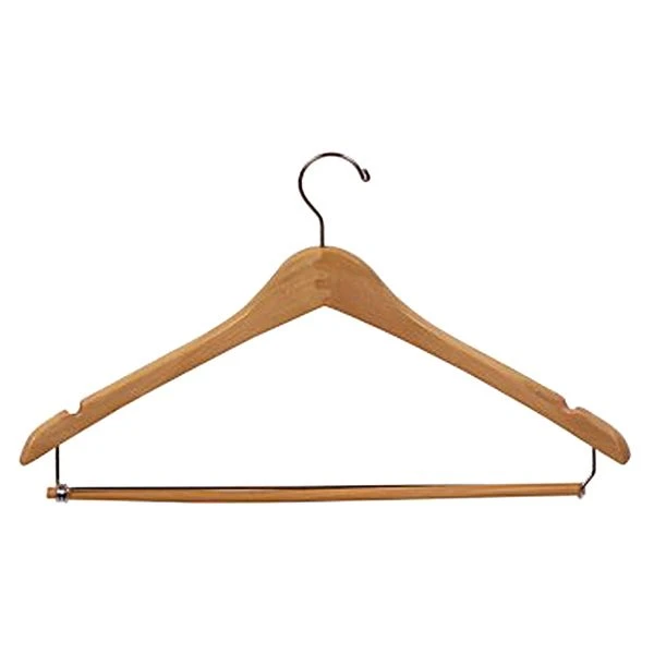 Premium contoured wooden suit coat hanger with locking bar.