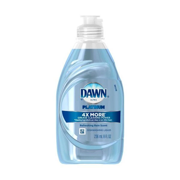 Dawn Ultra Platinum Dishwashing Liquid is a powerful cleaning agent that has 4x more grease cleaning power than non-ultra Dawn. A new refreshing rain scent as well!