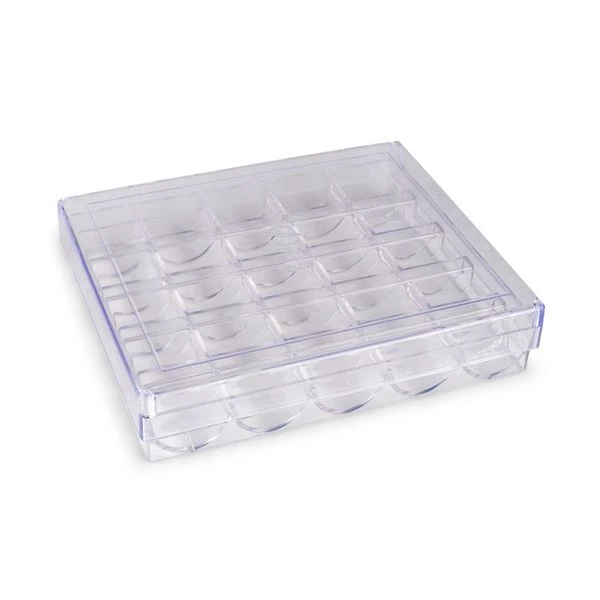 The see-through plastic case holds bobbins neatly in place while allowing you to view all the colors at a glance.