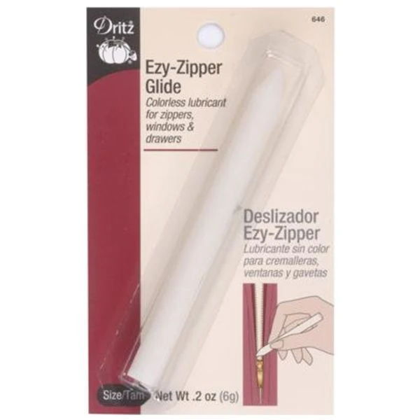 Dritz Ezy-Zipper Glide is a colorless, stainless lubricant.