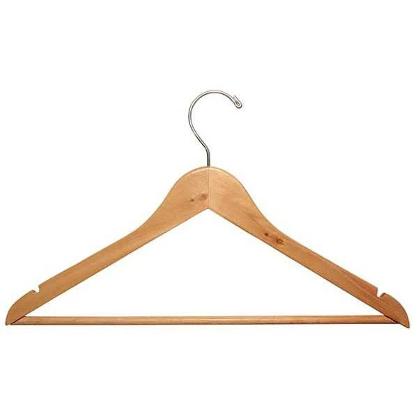 Flat Wooden Suit Hanger With Bar And Notches – Natural – 17″