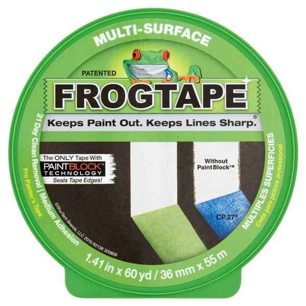 Frog Tape Multi-Surface will remove cleanly from most surfaces for up to 21 days or 7 days in direct sunlight.