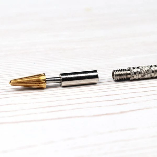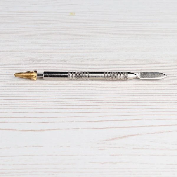 The Edge Paint Pen Applicator consists of a metal handle with some checkering that gives you a better grip on the pen.