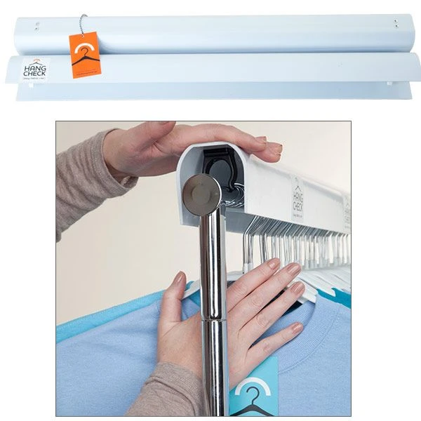 Hang Check is a pair of plastic covers that snap on over the rack, keeping everything aligned and orderly, just the way you like it.Â