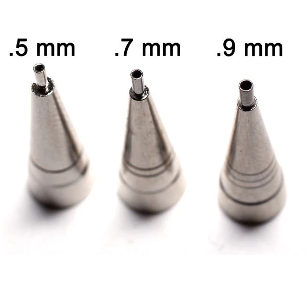 Set of 3 metal tips, including 0.5 mm, 0.7 mm and 0.9 mm.