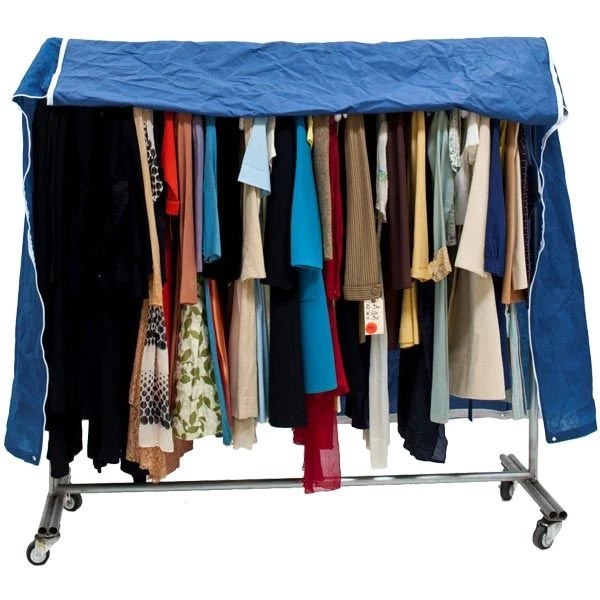 This durable cover is made of heavyweight plasti-canvas. If you want to feel secure that your clothing and your racks are protected, then our rack covers for collapsible rolling racks are the answer.Â