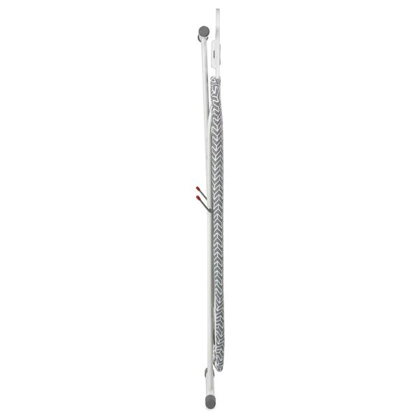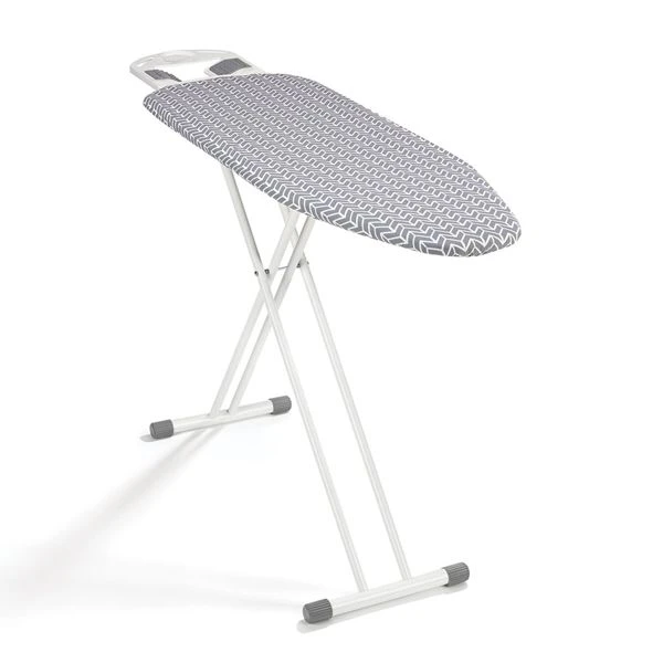 All-natural, cotton cover and thick pad provides a smooth and even ironing surface. Irons safely sit on the integrated rest without taking up precious ironing board surface.