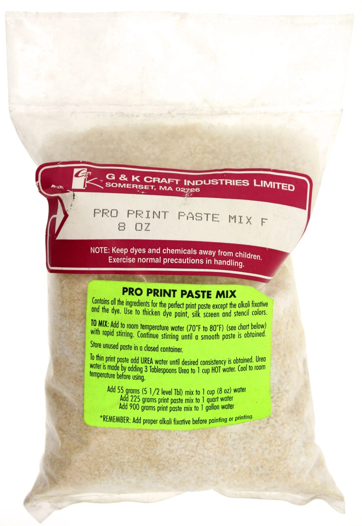 Pro Print Paste F (for silk) contains urea, low viscosity alginate and metaphos.