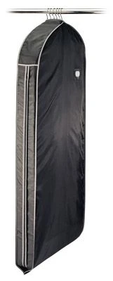 This zippered garment bag is constructed of 210 denier water-repellent black nylon. Includes a full five inch side gusset and a full length self-correcting nylon zipper.Â