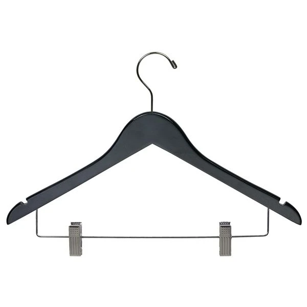 Rubber Coated Flat Notched Wooden Combo Suit Hanger W/ Clips 17″ – Matte Black