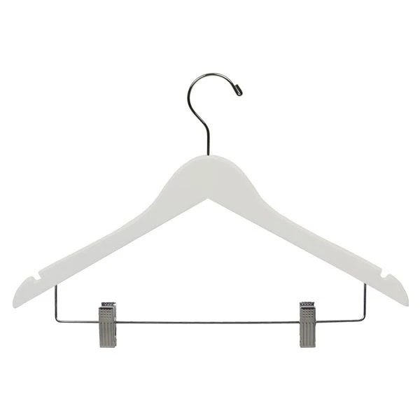 Rubber Coated Flat Notched Wooden Combo Suit Hanger W/ Clips 17″ – Matte White