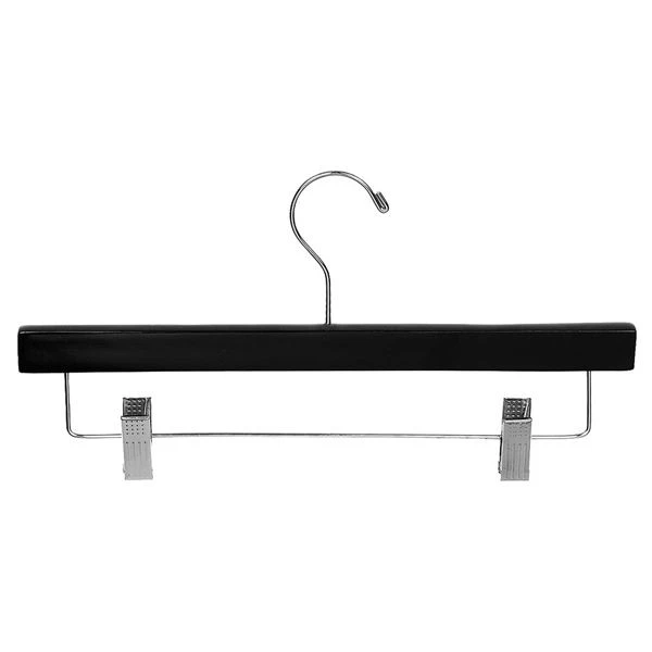 Rubber Coated Wooden Pant/Skirt Hanger W/ Clips 14″ – Matte Black