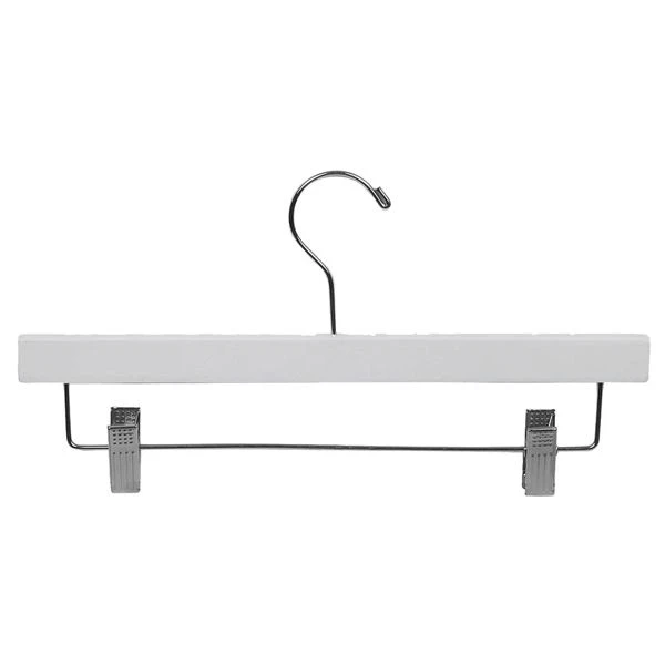 Rubber Coated Wooden Pant/Skirt Hanger W/ Clips 14″ – Matte White