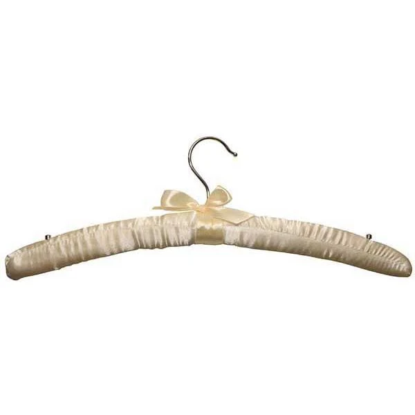 These plush, well-constructed satin padded hangers feature a space-saving flat body, polished chrome swivel hook and an elegant bow.