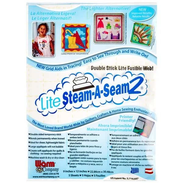Lite Steam-A-Seam 2 is a heat-activated, pressure sensitive fusible web.