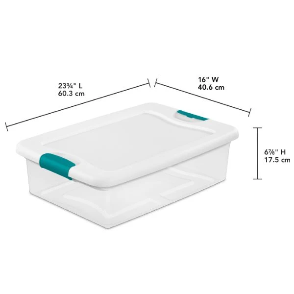 Sterilite Storage Bin W/ Teal Latch – 32 Quart-24.5 X 17.75 X 7