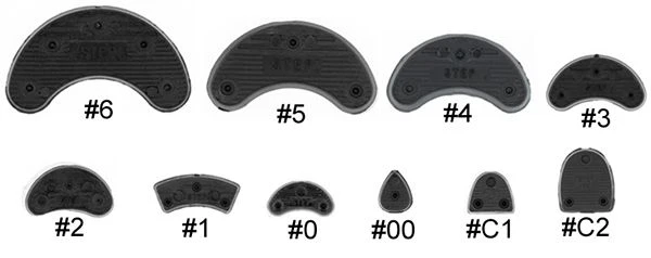 Traveler shoe plates are molded for long durability. They provide non slip and non marking protection and extend the life of shoe heels and toes. Most people tend to quickly wear the outside edge of the shoe heels, but these plates will wear out before any damage begins on the heel. The plates are available in 10 different sizes and come with adhesive. For a better grip, the plates have countersunk holes for use with small nails.